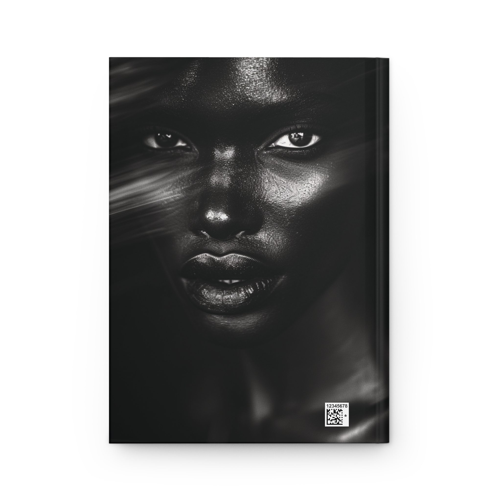– Full wraparound print showcasing continuous black-and-white portrait