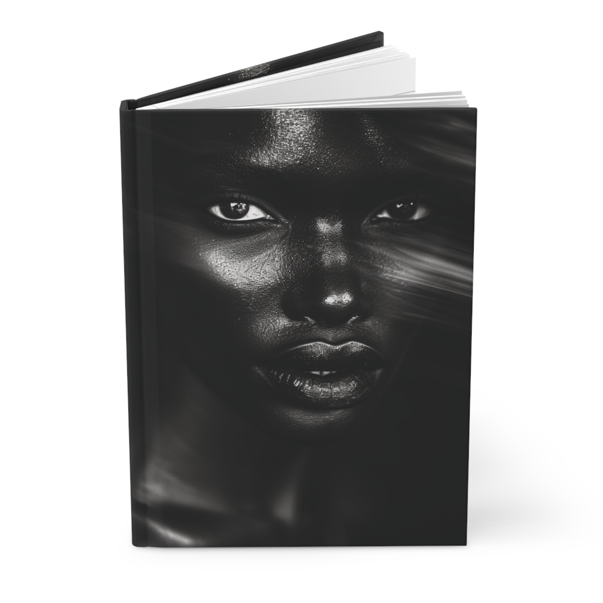 This hardcover journal wraps a striking black-and-white portrait across a smooth matte cover, creating a bold, intimate object you’ll want to hold. The sewn casewrap binding lets the book open flat and bend without losing form, while 150 lined pages with perforations give you room to write, sketch, and tear out pages cleanly. The full wraparound print keeps the artwork continuous from front to back, and the matte lamination mutes glare so the face reads like a quiet, powerful photograph. Keep it on your desk as a place for focused notes, late-night ideas, or the kind of personal reflections that demand a serious, elegant canvas.